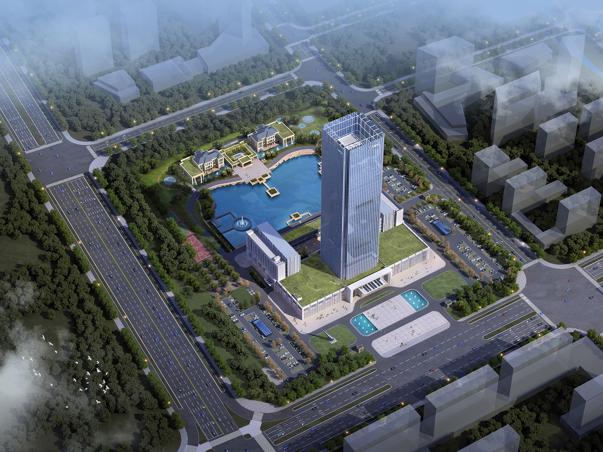 中国人生就是博总部的妄想建设凭证人生就是博的全球化定位,围绕行政中心、信息中心、研发中心、培训中心、聚会展览中心等功效,以总部办公集群的理念,展示国际一流企业形象。